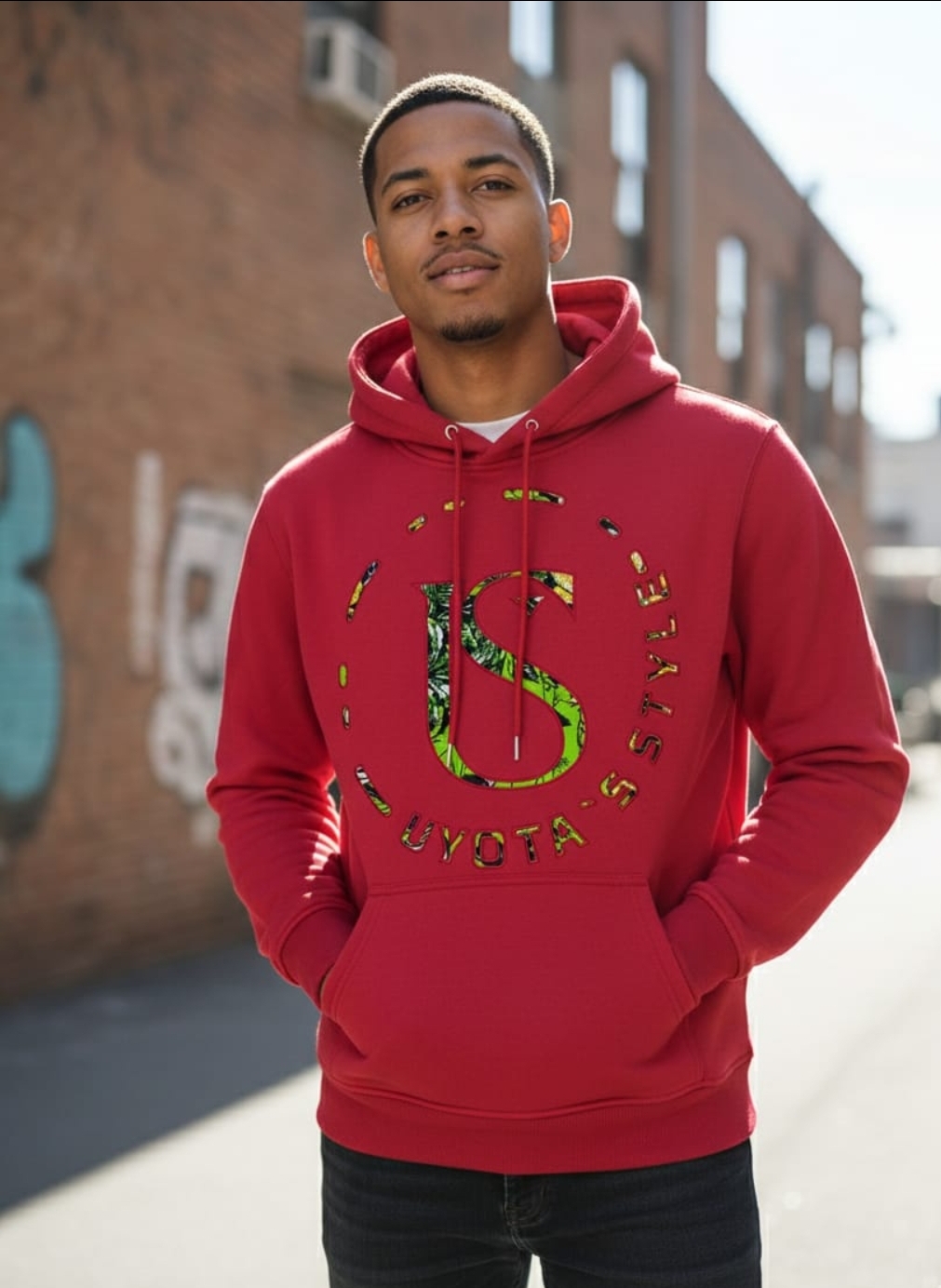 Step into comfort and culture with this signature hoodie. Crafted from a soft fleece blend, it features a roomy kangaroo pocket and an ankara-stitched inner hood for a subtle yet striking twist. Designed for versatility, this hoodie transitions seamlessly with the Uyota Style Logo. Material: Cotton-polyester fleece blend Features: Kangaroo pocket, Ankara fabric inner hood & pocket detail, ribbed cuffs & hem Style Tip: Pair with jeans or joggers to let the Ankara accents shine